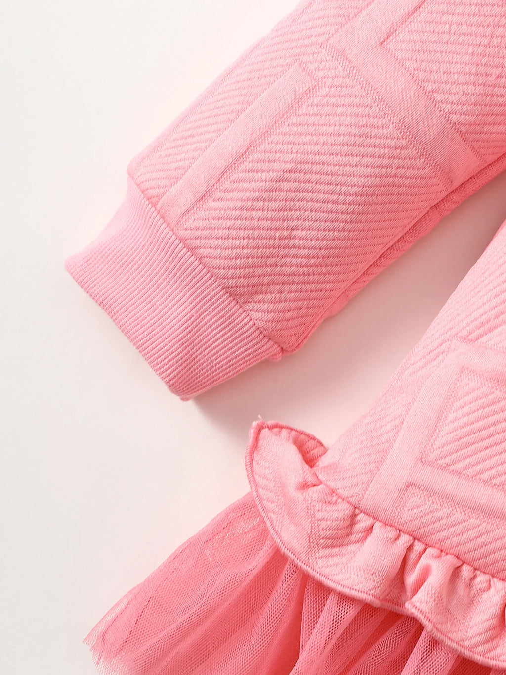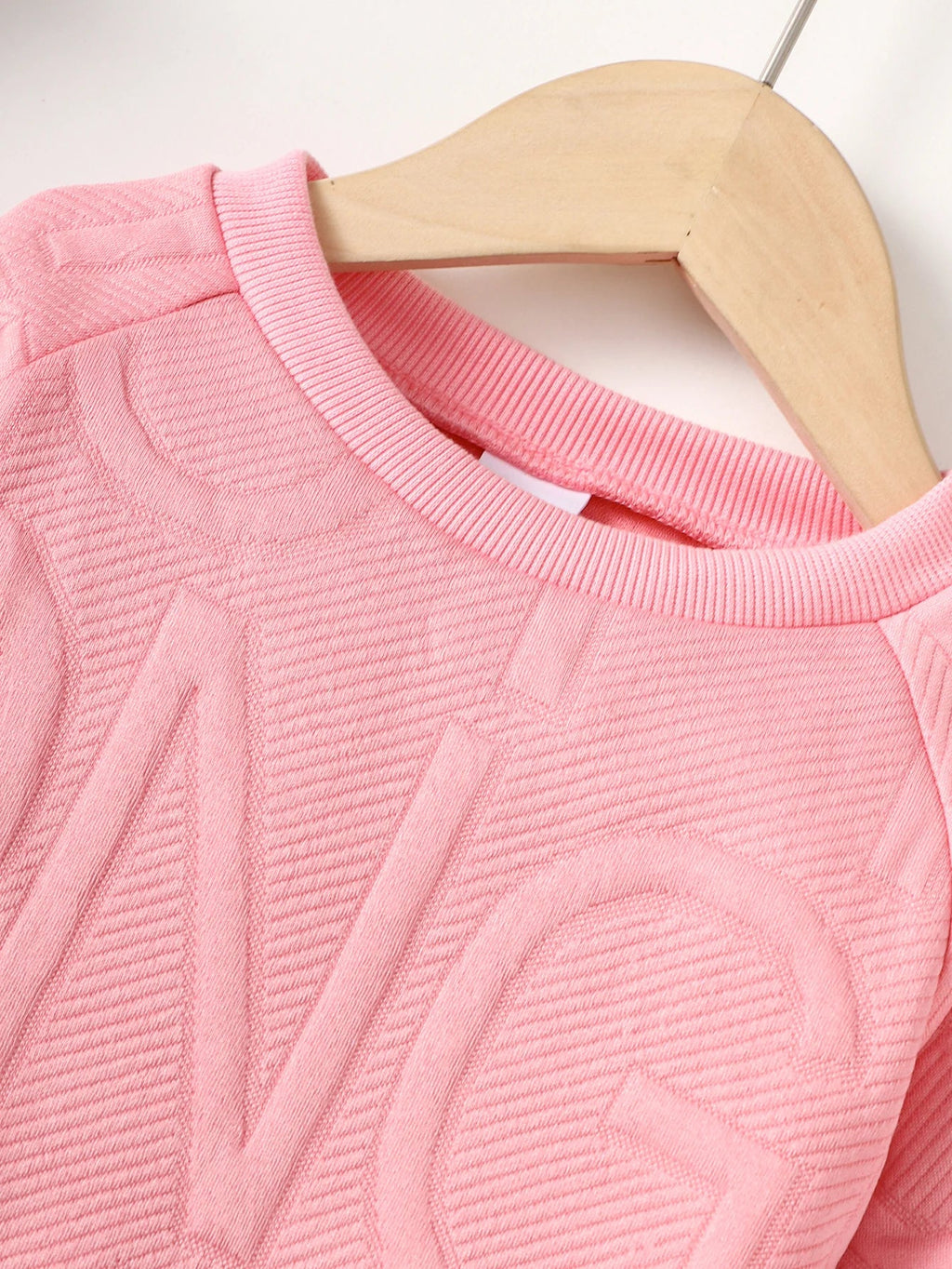 This dress is fit for a princess with its embossed letter design and satchel. Perfect for winter with long sleeves and long skirt. Make her birthday party outfit complete with this charming dress.