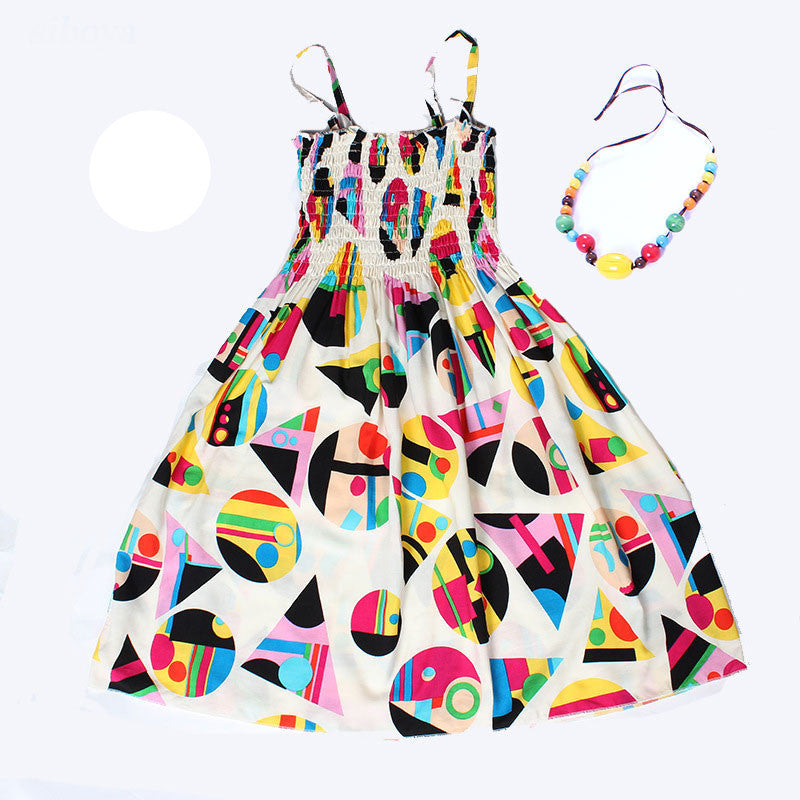 This is a sweet bohemian style with fine prints beach dress for girls of about 2-11 years old. It also comes with a free necklace.