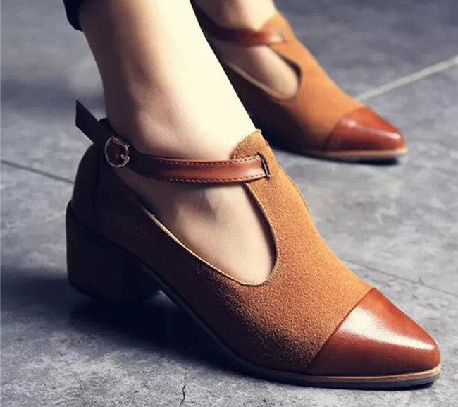 The Vintage Oxford Shoes Women Pointed Toe Cut Out Med Heel Patchwork Buckle Ladies Shoes Flats WFS112 are perfect for spring and autumn seasons, providing breathability and comfort. Whether you're at the office, enjoying a weekend brunch, or attending a special event, these flats will elevate your outfit effortlessly.