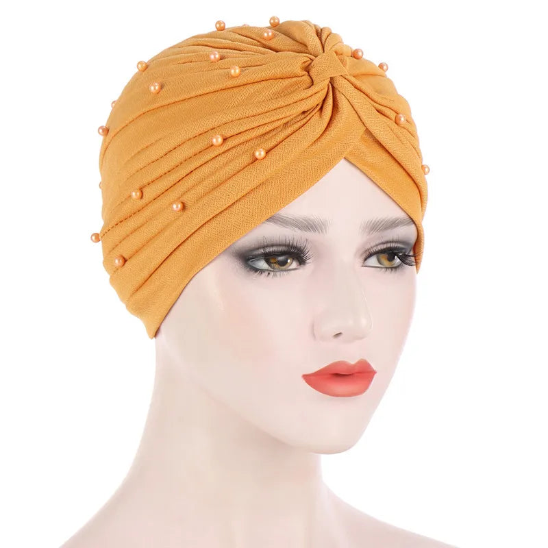 Take on new adventures with our Cotton Solid Folds Pearl Muslim Turban Scarf! This Women Islamic Inner Hijab Cap features a comfortable and stylish hat, perfect for those who like to take risks. Take charge of your fashion game and add a daring touch to your outfit.