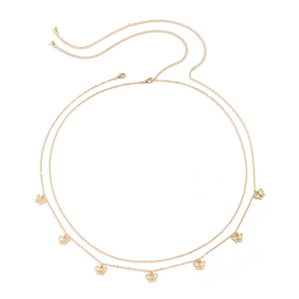 Add a touch of charm and elegance to your summer beach look with this Double Thin Chain Women's Waist Chain. The delicate butterfly detail adds a playful and feminine touch to this stainless steel belly chain. Perfect for pairing with any bikini or body jewelry, this chain is a must-have for your vacation wardrobe.