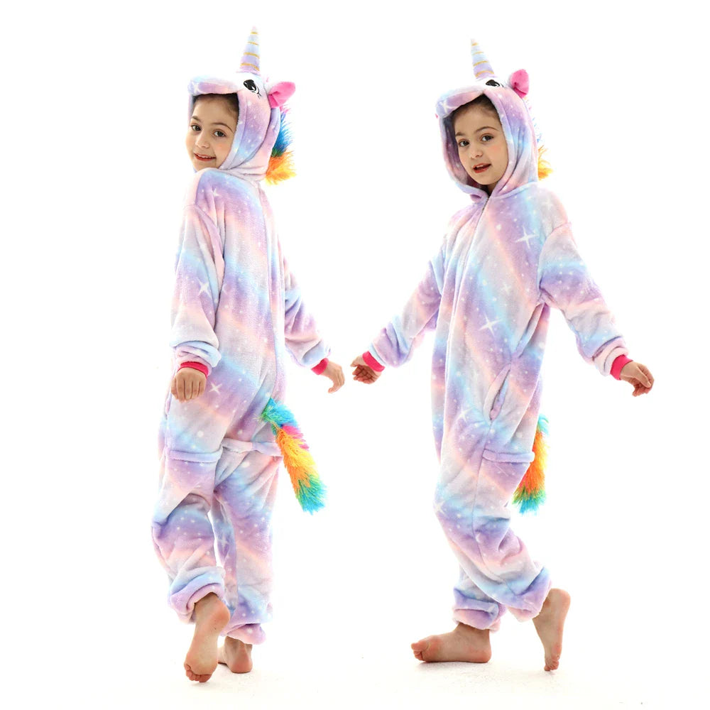 This Halloween Cosplay Costume Girls Unicorn Onesies Children's Pajamas One Piece Hooded Jumpsuits Kids Onesie Rompers is not just a costume; it’s a way for your child to express their unique personality while staying warm and comfy. The playful design allows for easy movement, making it suitable for both active play and cozy relaxation. Unleash your child's inner unicorn today and watch them shine in this charming outfit!