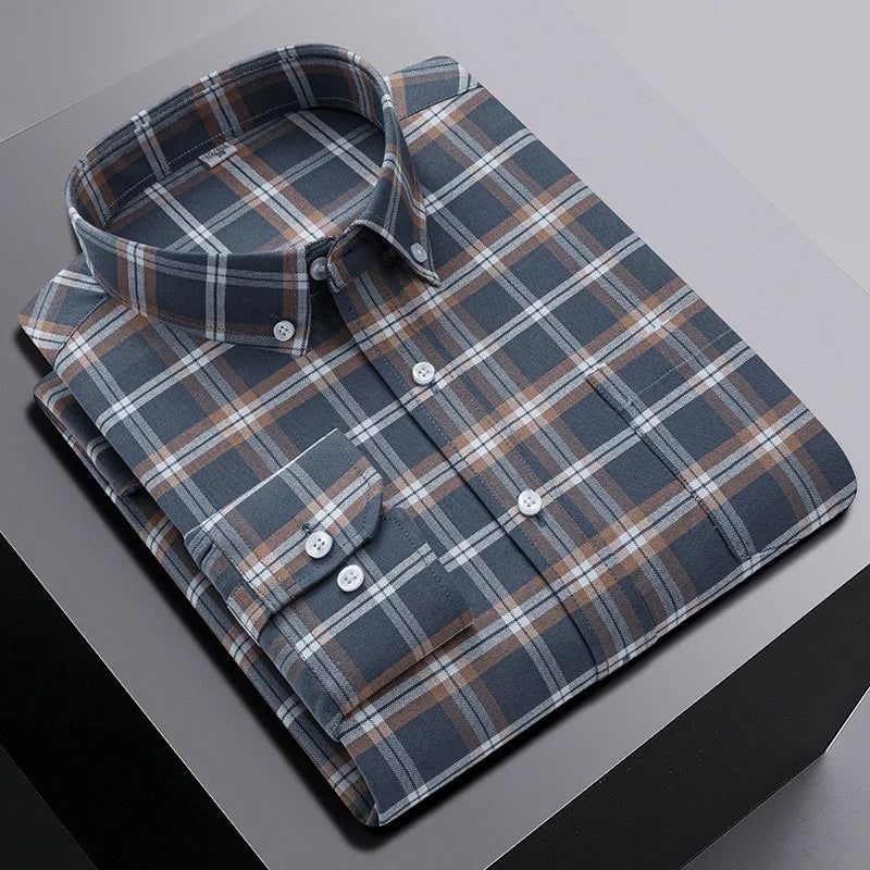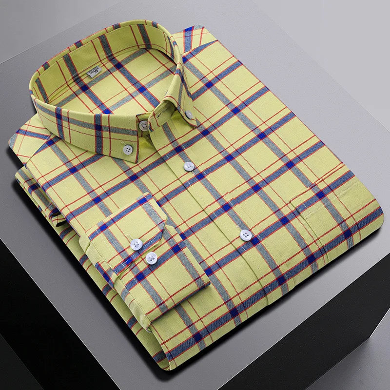 Embrace your bold side with this top-quality shirt that promises to elevate your casual wear. Grab your men's 100% cotton long sleeve shirt plus size plaid casual comfort Oxford woven pocket free iron today and experience the perfect blend of comfort, style, and practical design!