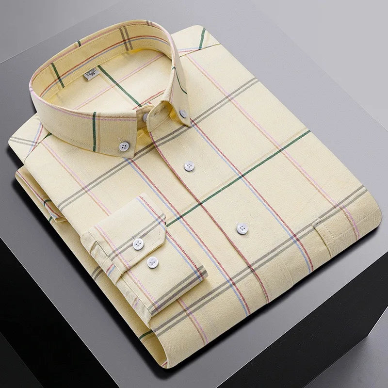 Introducing our men's 100% cotton long sleeve shirt plus size plaid casual comfort Oxford woven pocket free iron, designed for the modern man who values style and functionality. This shirt is made from high-quality, breathable 100% cotton, ensuring all-day comfort whether you're at work or enjoying a casual outing. The versatile plaid design adds a trendy touch, making it suitable for both laid-back and semi-formal occasions.