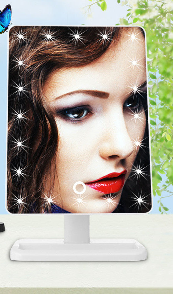 Experience beauty and luxury with the Adjustable Vanity Tabletop Lamp 20 LEDs Lighted LED Touch Screen Mirror Makeup Portable Mirror Luminous 180 Rotating Mirror. This innovative makeup mirror is designed to enhance your beauty routine, making it easier than ever to achieve flawless makeup application. With its sleek and modern design, this portable mirror is perfect for any vanity or travel use.