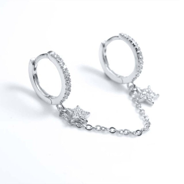 Elevate your jewelry game with the 925 Sterling Silver Double Hole Link Chain Circle Hoop Earrings Zircon Moon Star Lightning Pendant Huggie Piercing Earring. Experience the blend of style, comfort, and quality today!