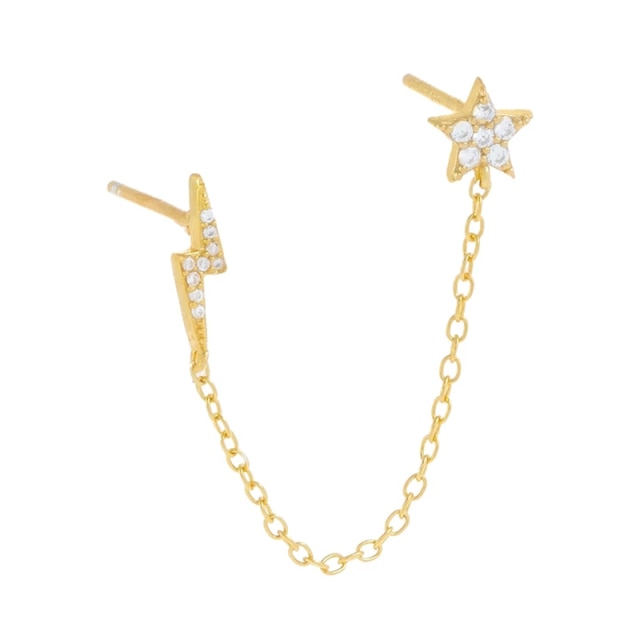 These earrings feature a double hole link chain design that enhances their modern appeal. The captivating zircon moon, star, and lightning pendant add a whimsical touch, allowing you to express your individuality effortlessly. Whether you're dressing up for a special event or looking to add flair to your daily outfit, these earrings will surely catch the eye.