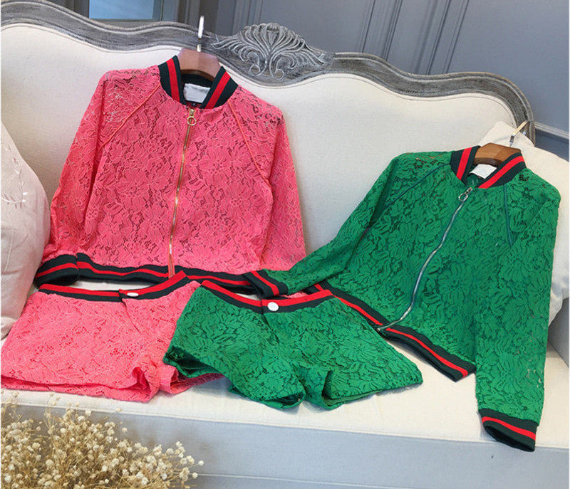 Introducing the Runway Set Women's High Quality Lace Long-Sleeve Crop Top And Lace Shorts 2 Piece Set, the perfect addition to your summer wardrobe. This stylish ensemble combines elegance and comfort, making it an ideal choice for casual outings, beach days, or evening gatherings. The exquisite lace detailing enhances your feminine allure while providing a breathable feel on warm days.