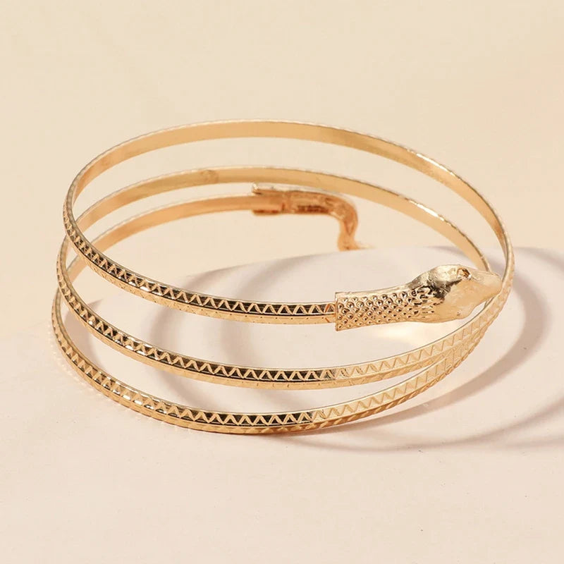 The spiral swirl design offers a sophisticated flair that allows it to double as both an upper arm cuff and a bangle bracelet. Its versatile style makes it perfect for costume parties, themed events, or even everyday wear when you want to stand out.