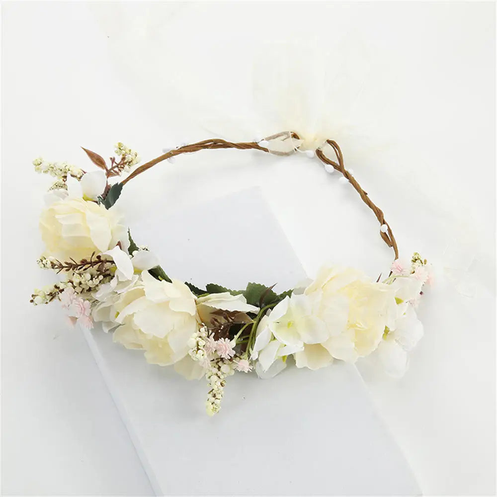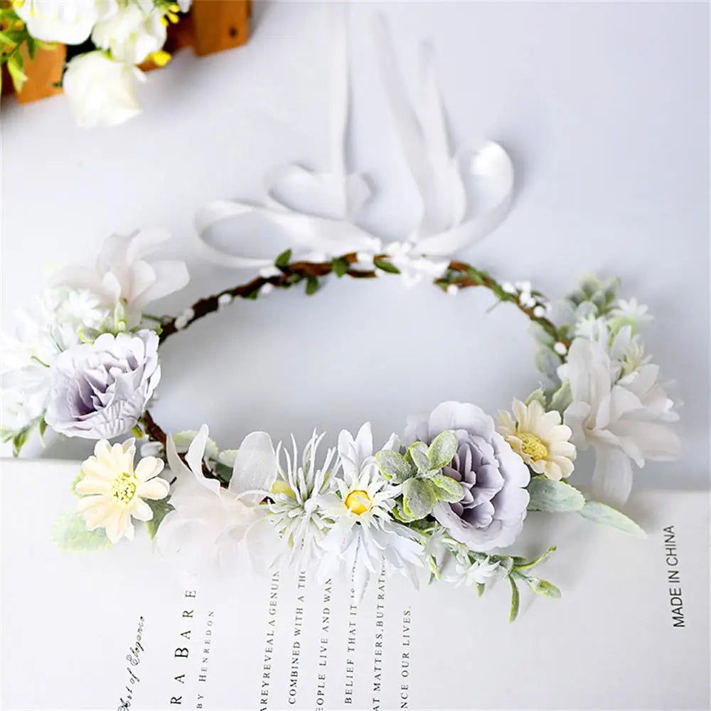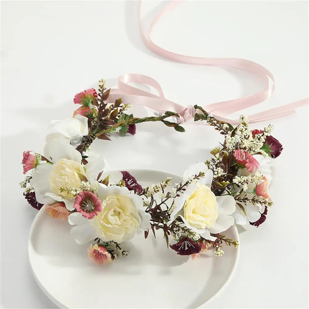 Elevate your wedding aesthetics with the Artificial Flower Wreath Bride Women Bohemia Beach Flower Crown Hair Band Wedding Floral Headband Garland Girl Hair Accessorie. This stunning floral headband is meticulously designed for brides who wish to radiate bohemian charm on their special day. Crafted from high-quality artificial flowers, this crown adds a touch of elegance and whimsy to your bridal ensemble, making you feel like a true boho goddess. Perfect for beach weddings, garden ceremonies, or any outdoor celebration, it seamlessly complements a variety of styles.