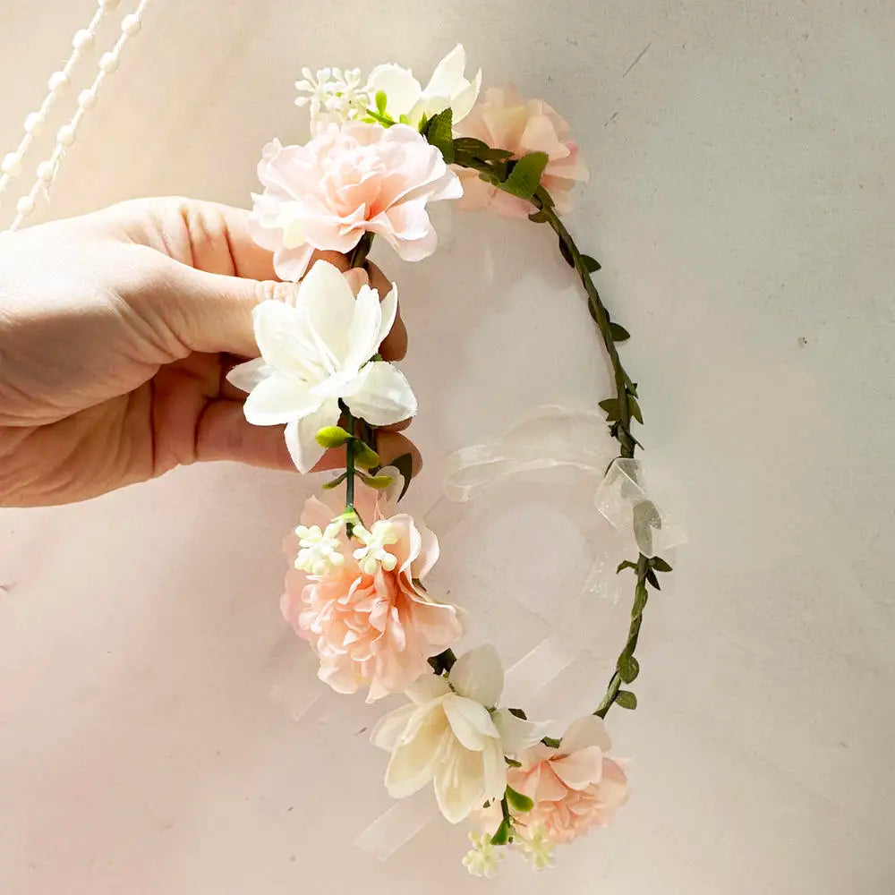 Take your beach wedding look to the next level with our Bohemian-inspired artificial flower crown. The perfect addition for any daring bride, this floral headband will have you feeling like a boho goddess as you walk down the aisle. Embrace adventure and make a statement on your special day.