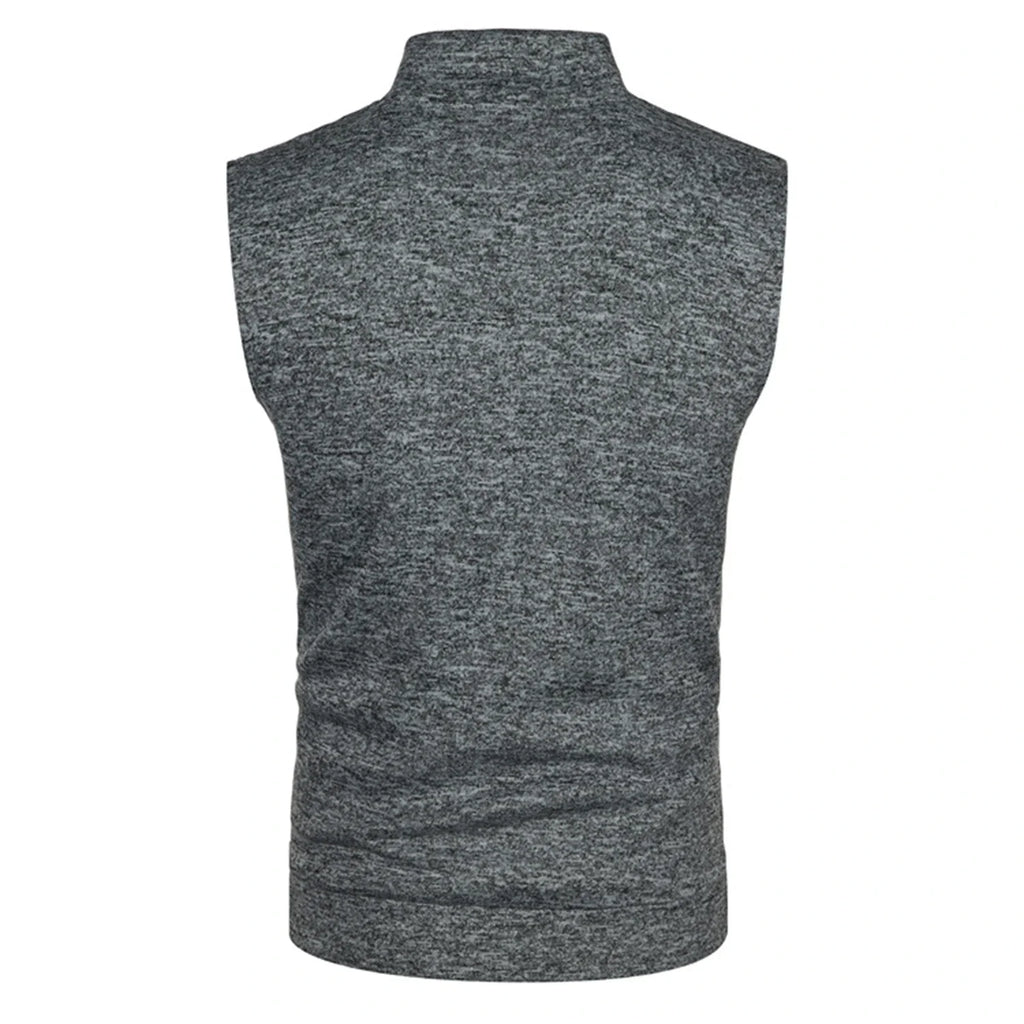 Take a fashion risk with our men's knitted velvet zipper vest. The high neck and sleeveless design exudes boldness, while the soft fleece lining provides ultimate comfort. Perfect for any casual occasion, this solid color vest is a must-have for the modern man.