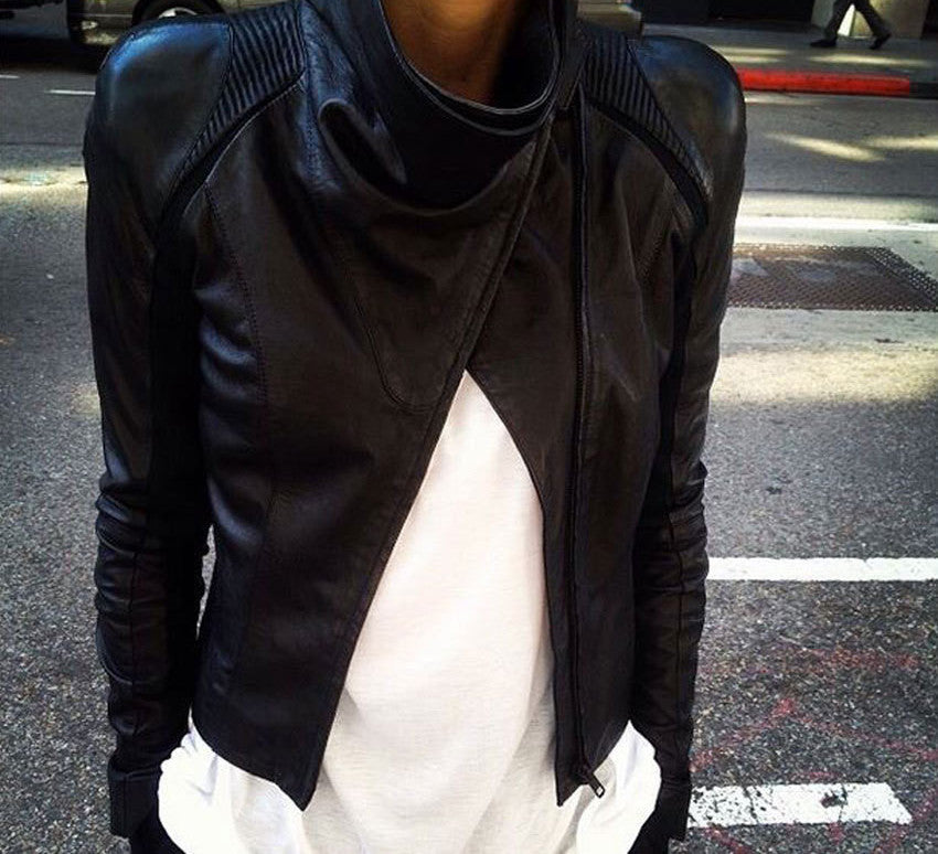 New : motorcycle pu suede big collar black leather jacket windbreaker