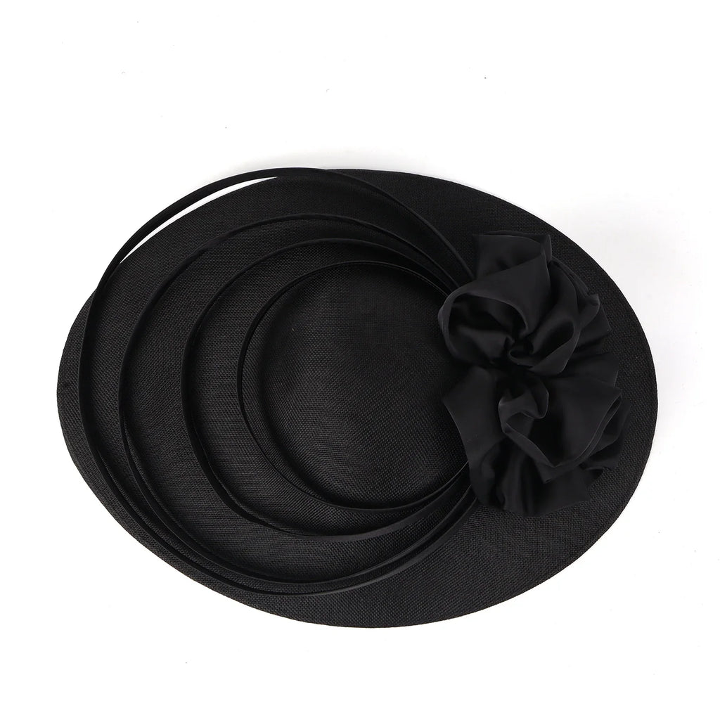 Introducing the stylish and elegant Black Large Flower Fascinator Sinamay Church Hat! Perfect for any occasion, this luxury headband hat will make you stand out in a crowd. With its chic design and comfortable fit, it's the perfect accessory for weddings, tea parties, or even the Kentucky Derby. Get ready to turn heads and make a statement with this stunning hat.