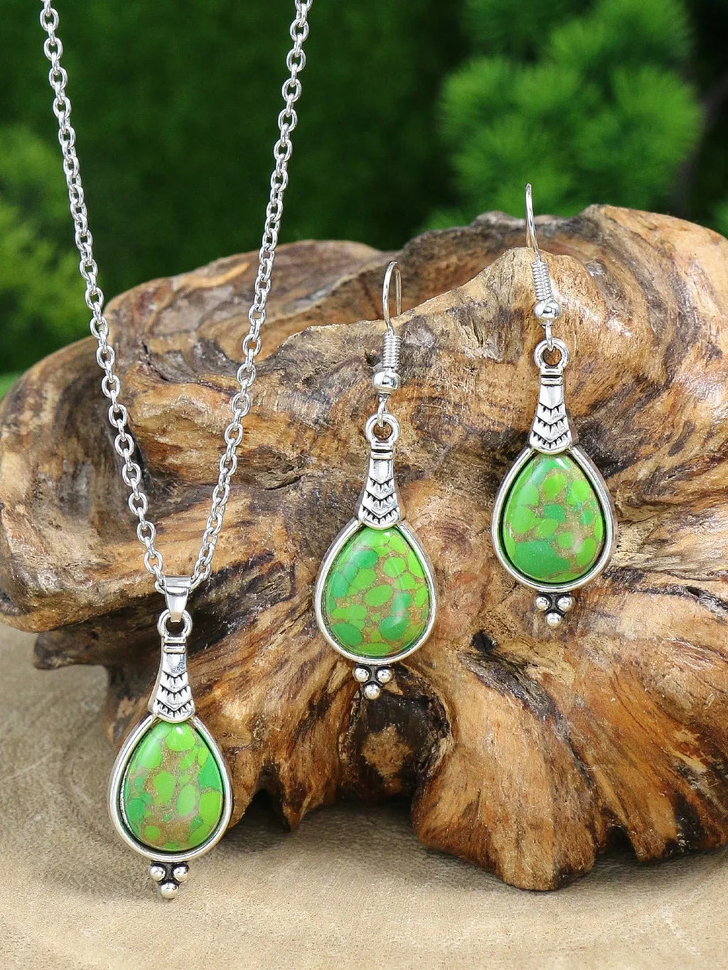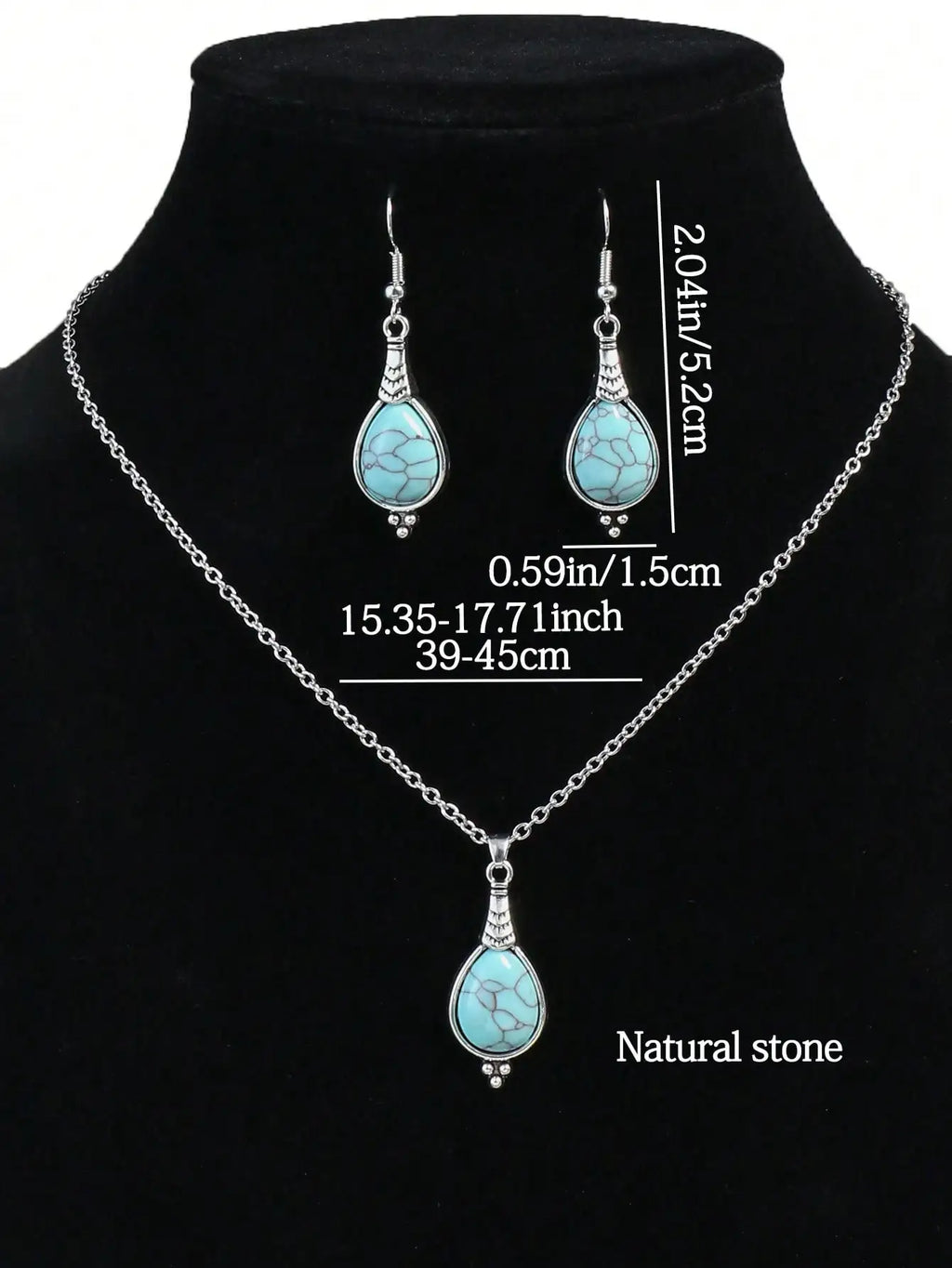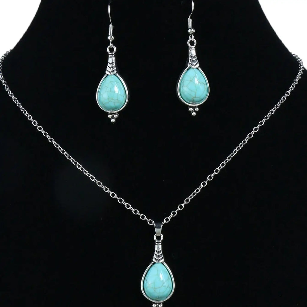 Embrace your free-spirited style while enjoying the comfort of a lightweight jewelry set. The Bohemian Holiday Style Jewelry Set Women's Water Droplet Stone Inlaid Classic Simple Earrings Short Necklace not only enhances your outfit but also reflects your individuality. Gift it to a loved one or treat yourself to a chic accessory that embodies the essence of bohemian charm. Make a statement this holiday season with this exquisite jewelry set!