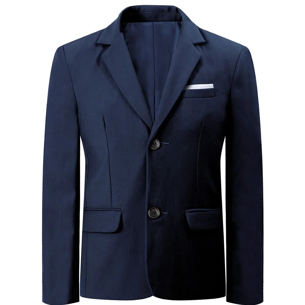 Designed for spring and autumn wear, it provides just the right amount of warmth while remaining stylish. Whether dressing up for a formal event or for playtime at home, this blazer is a fantastic addition to any young gentleman's wardrobe.