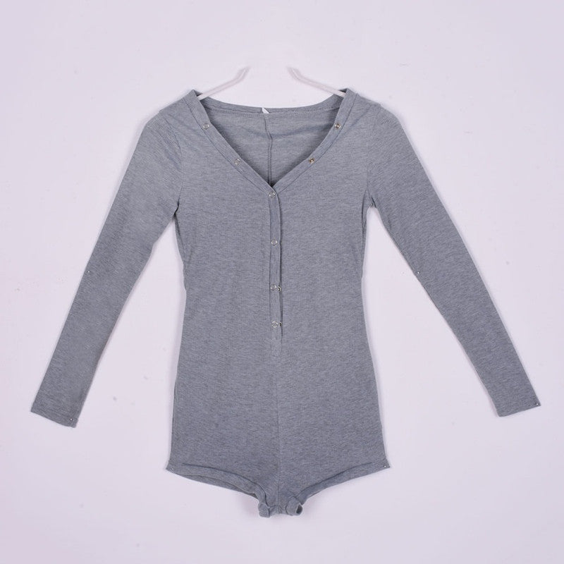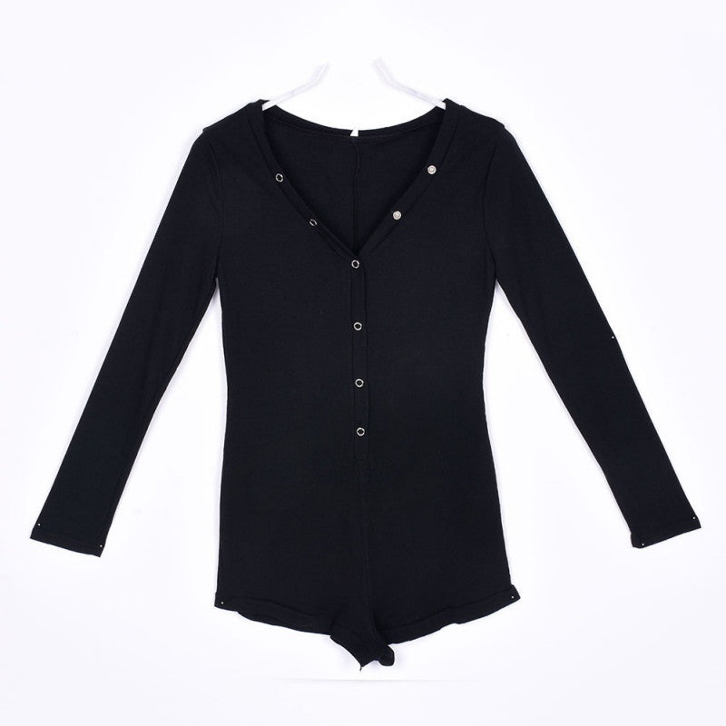 With its short pants design, you can stay cool and relaxed while looking fabulous. The button decoration provides a unique flair that sets this romper apart from the rest. It combines style with practicality, allowing for easy wear and movement.