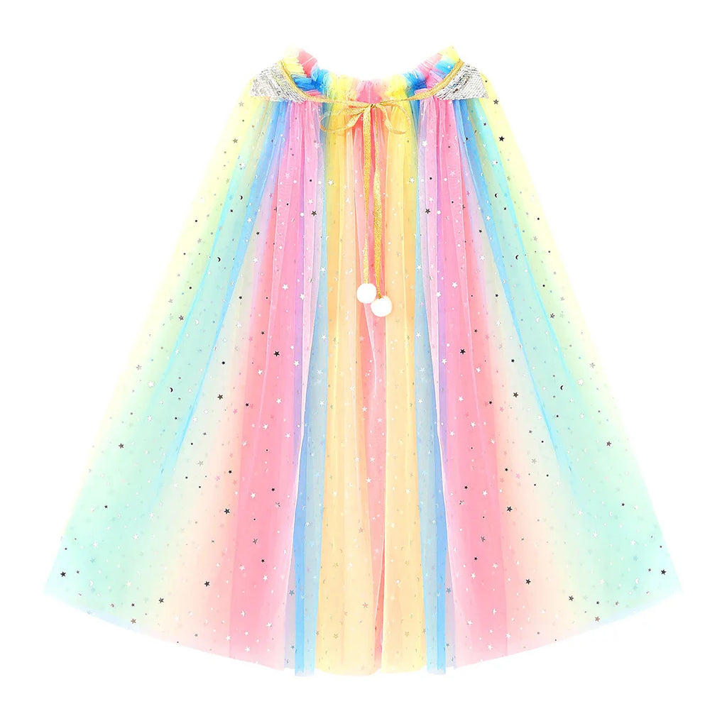 Transform your little girl into a festive fashionista with our Christmas Halloween Girls Cloak! The sequin shawl adds a touch of sparkle to any outfit, making it perfect for holiday parties and birthday celebrations. One size fits all for easy dressing, and the fun rainbow princess design will make her the life of the party.