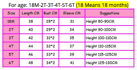 We offer a wide range of sizes from 18M to 6T, ensuring that you can find the perfect fit for your growing child. Please contact us for detailed sizing information.
