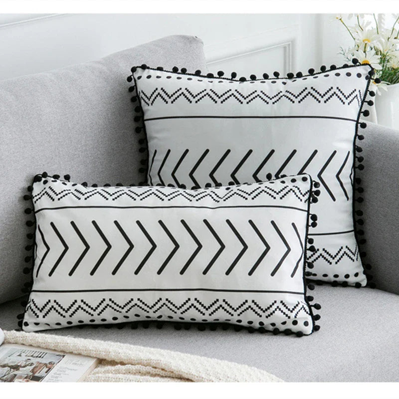 Add some personality to your living space with our Cushion Cover! This black, geometric-patterned pillowcase is made of durable polyester, ensuring both style and comfort. Elevate your home decor with this fun and quirky addition.
