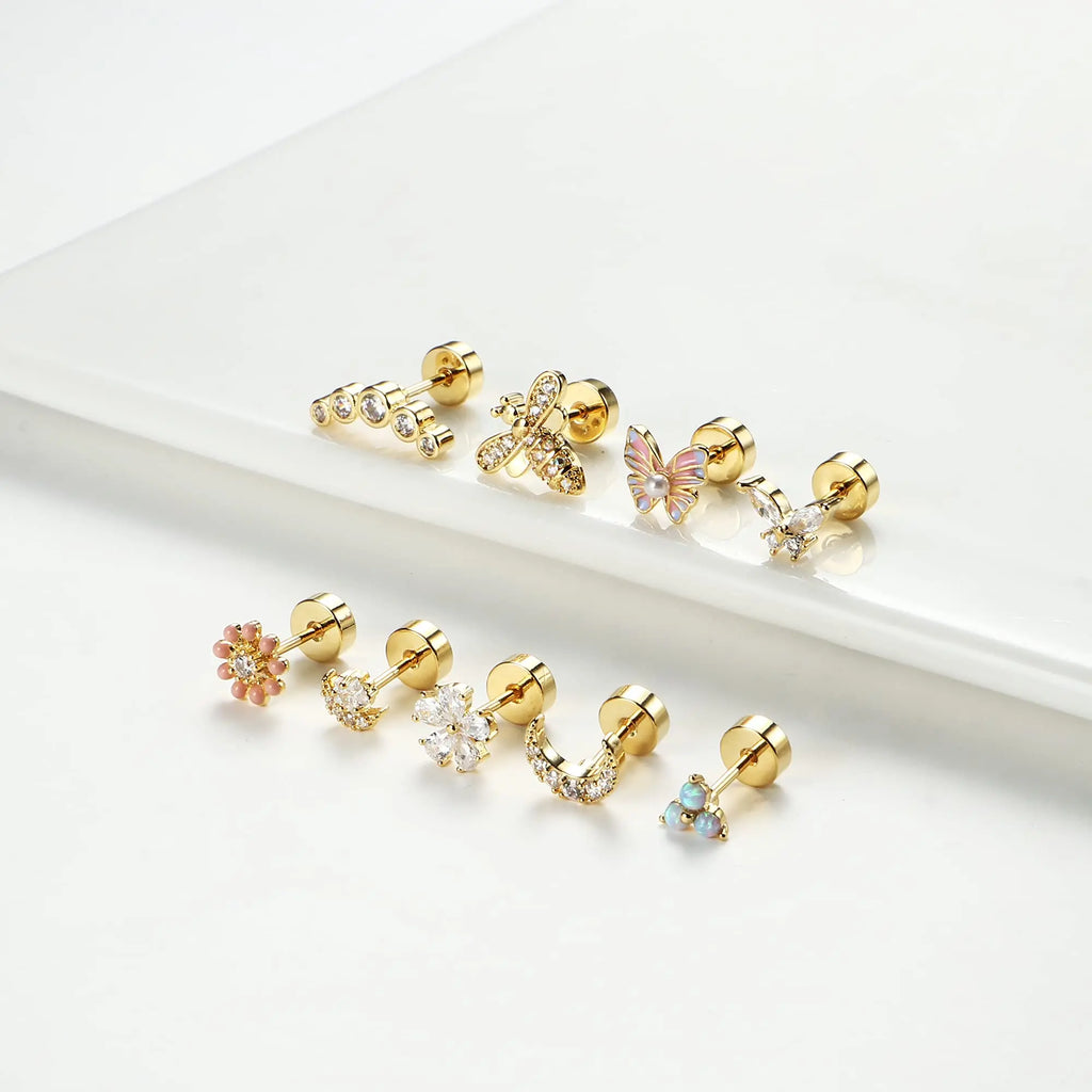 Enhance your ear jewelry collection with our exquisite Cartilage Earrings Stud for Women Surgical Steel Flat Back Earring Butterfly Flower Tragus Helix Piercing Jewelry. Crafted from premium 316L surgical steel, these earrings are designed to blend style with comfort, making them a must-have accessory for any fashion-forward individual.