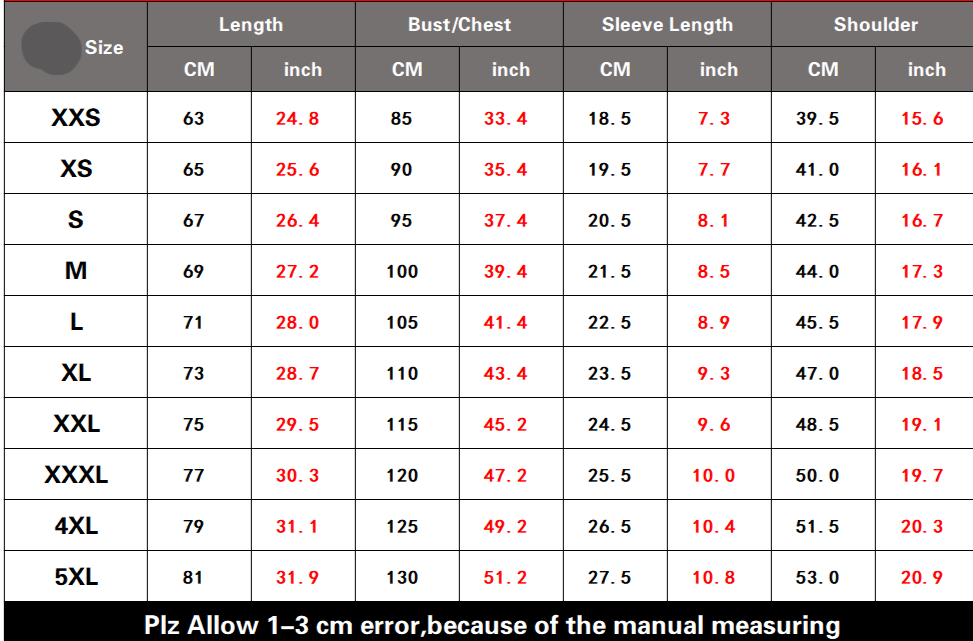 Size: 2XS-5XL
