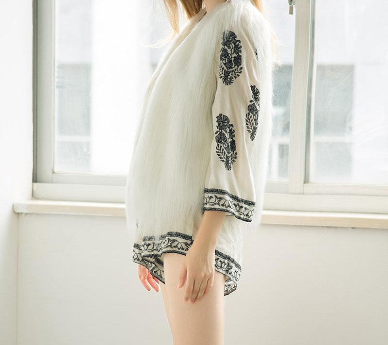 An elegant thick warm faux fur sleeveless vest that comes in many colors for women, a wide-waisted O-neck jacket with covered button suitable for winter seasons.