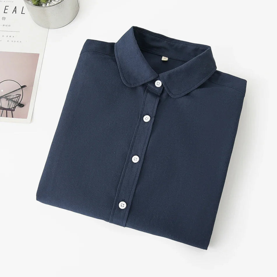 Get ready to rock this Women's Oxford Cotton Blouse! Perfect for a casual day out, this long sleeve shirt is made with high-quality cotton and designed to be comfortable and stylish. It's the perfect addition to your wardrobe and can be paired with any bottoms for a chic look.