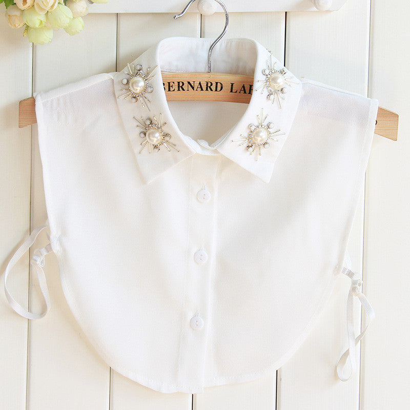 This false collar features exquisite diamond and pearl embellishments that add a touch of elegance to any outfit. The solid pattern makes it easy to pair with various styles, whether you're dressing up for a formal occasion or looking to enhance your everyday attire.