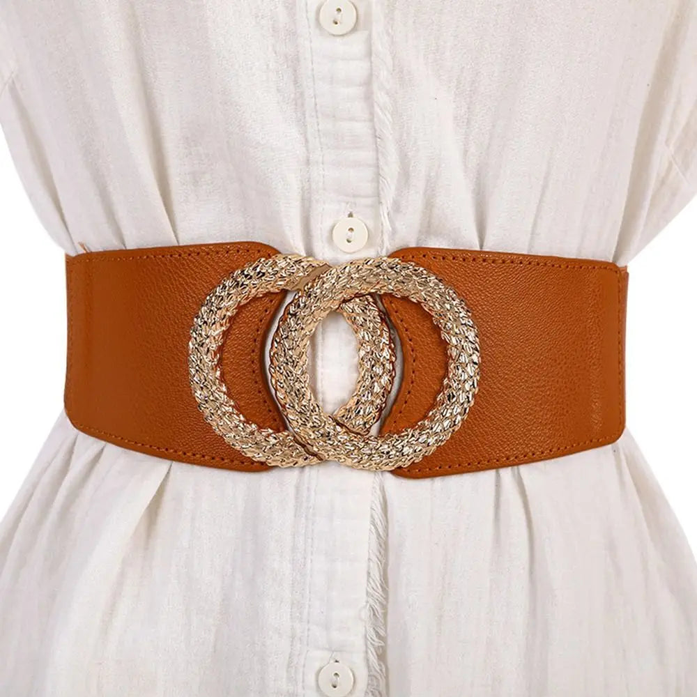 Transform your wardrobe with our Wide Belts Decorated Elastic Leather Waistband Gold Buckle Dress Sweater Waist Belt for Woman. This stylish and functional accessory is designed to accentuate your silhouette while adding a touch of elegance to any outfit. The striking gold buckle not only serves as a focal point but also ensures a secure fit, making it perfect for dresses, sweaters, or any ensemble you choose.