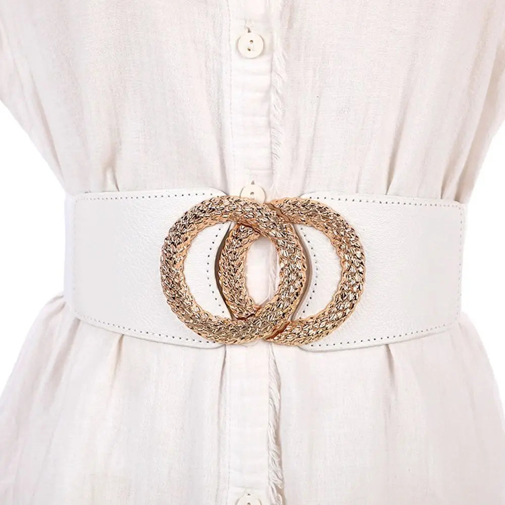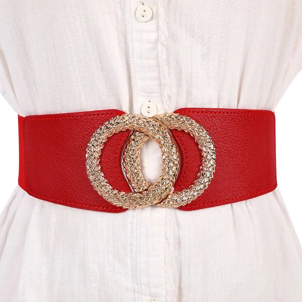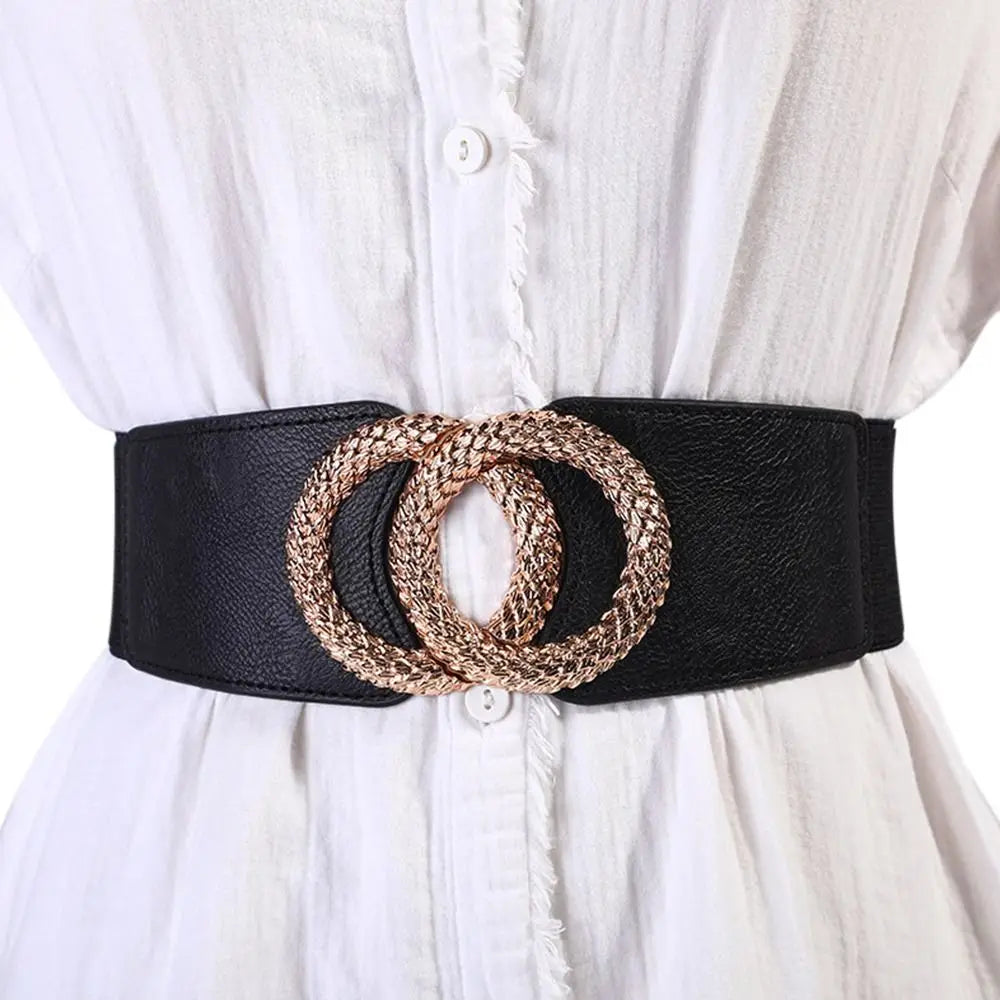 This Wide Belts Decorated Elastic Leather Waistband Gold Buckle Dress Sweater Waist Belt for Woman not only enhances your figure but also elevates your entire outfit. Whether you're dressing up for a night out or adding flair to your everyday look, this belt is your go-to accessory. Don't miss out on the chance to showcase your style with this beautiful waistband!