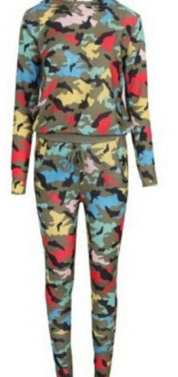 Burn those calories in this beautiful camouflage tracksuit. This track suit is stretchy and colorful. Get this printed piece