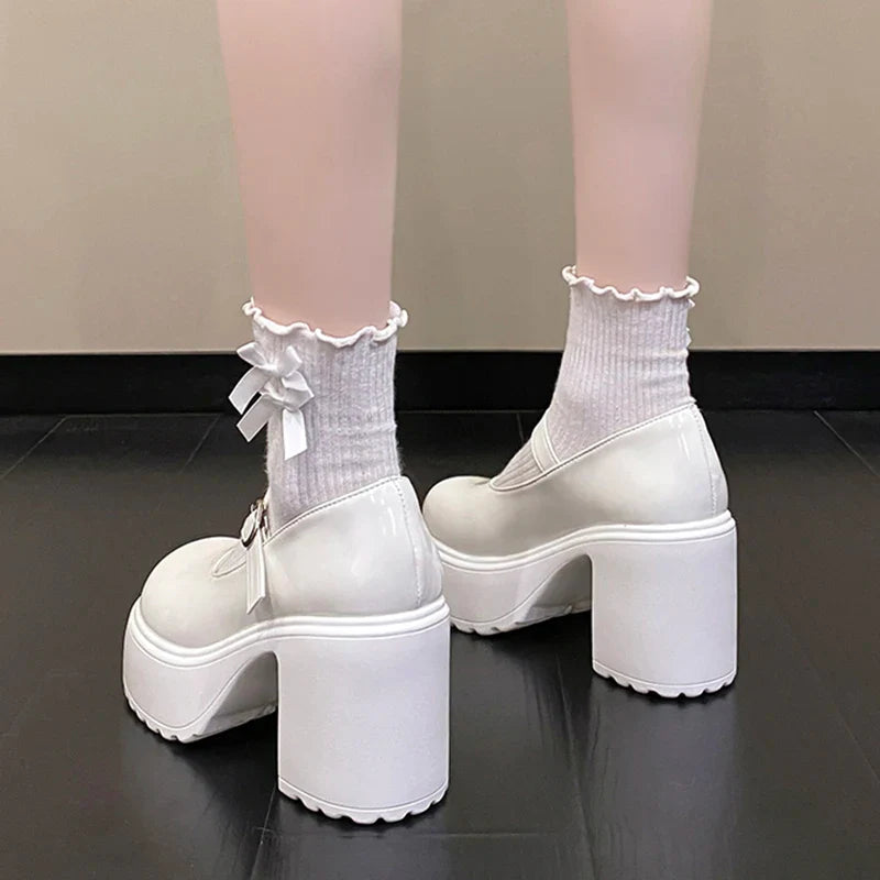 Elevate your wardrobe with our Fashion White Platform Pumps for Women Super High Heels Buckle Strap Mary Jane Shoes Woman Goth Thick Heeled Party Shoes Ladies. These stunning pumps blend retro elegance with a modern gothic twist, making them an essential addition to any fashion-forward woman's collection. With super high heels and a chunky, thick design, these shoes are perfect for those who want to make a bold statement.