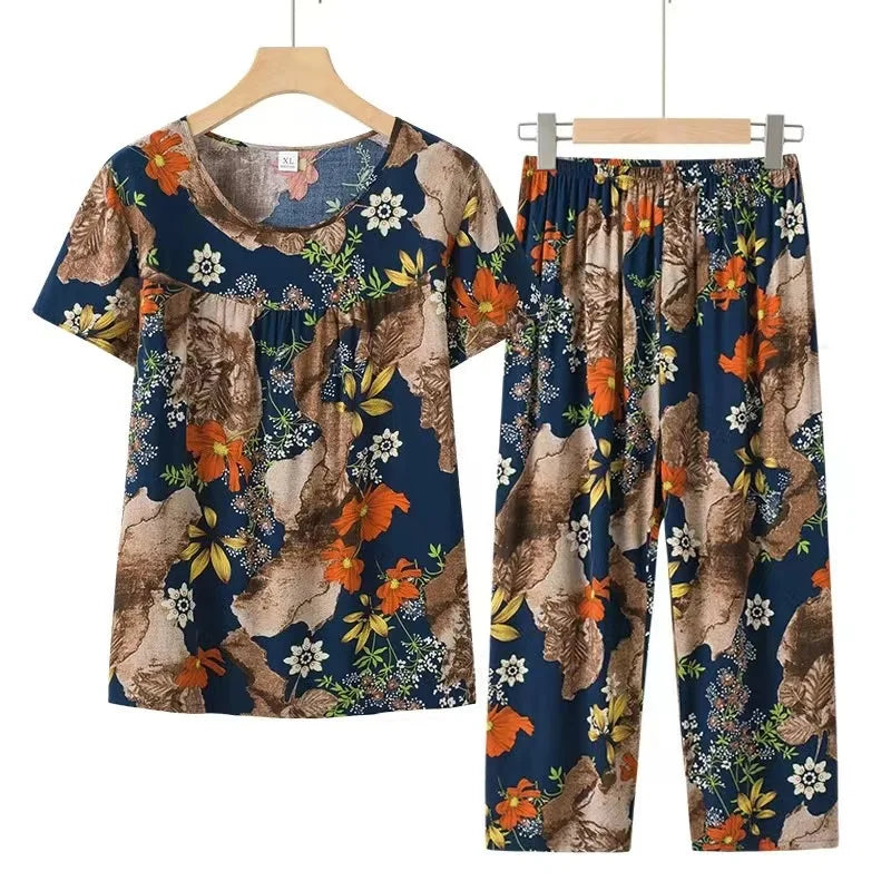 Experience ultimate comfort and style with our Cotton Pyjamas Women's Pajamas Set Short Sleeve Two Piece Set Casual Mother Home Clothes Pant. This thoughtfully designed two-piece pajama set features a short-sleeved top and relaxed-fit pants, making it the ideal choice for mothers who cherish moments of leisure at home. Whether you're lounging on the couch or drifting off to sleep, these pajamas ensure you do it in comfort and flair.