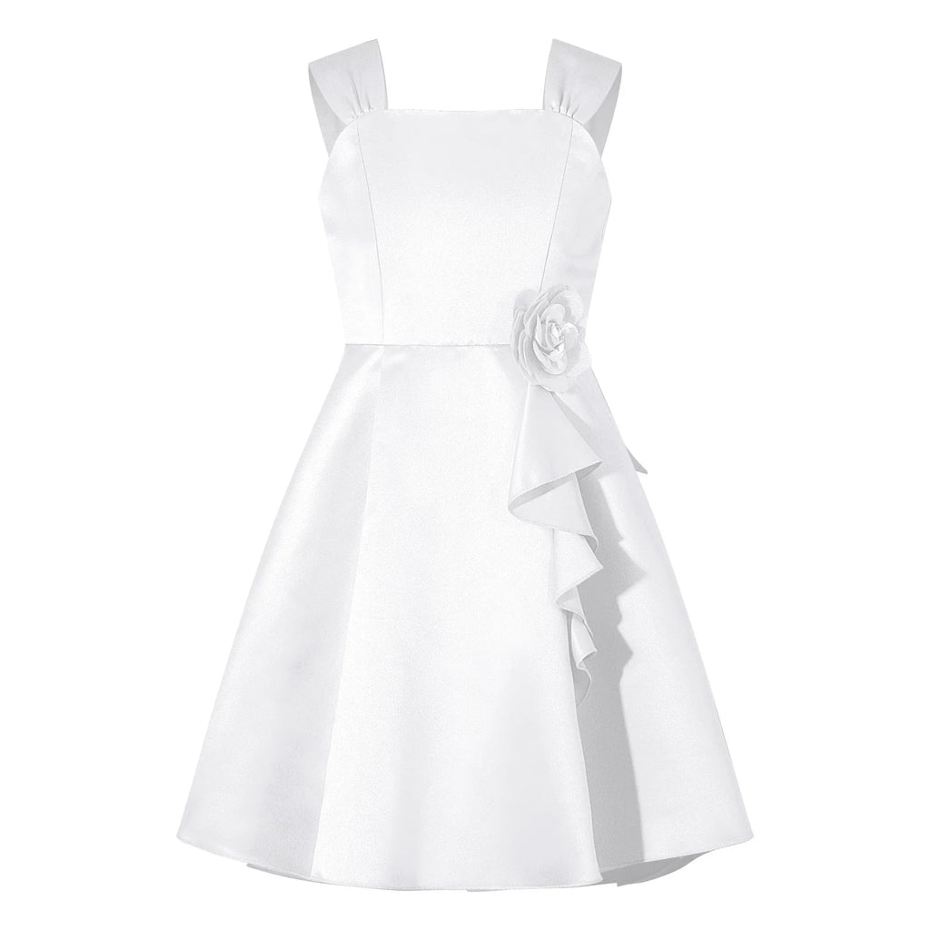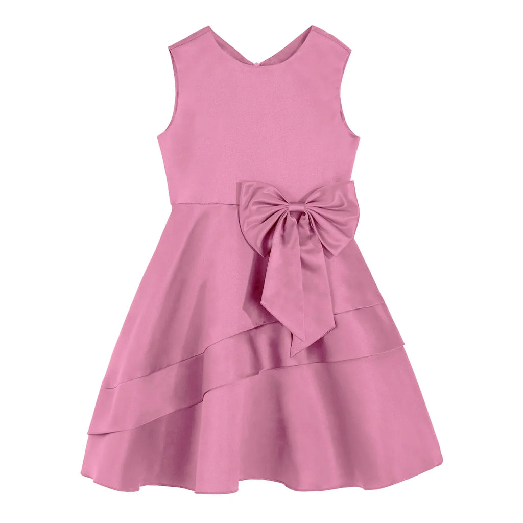 This beautiful dress features a lovely A-line silhouette that flows gracefully, complemented by a big bowknot that adds a charming accent. The sleeveless design is perfect for warm weather, allowing your child to twirl and dance freely while staying cool.