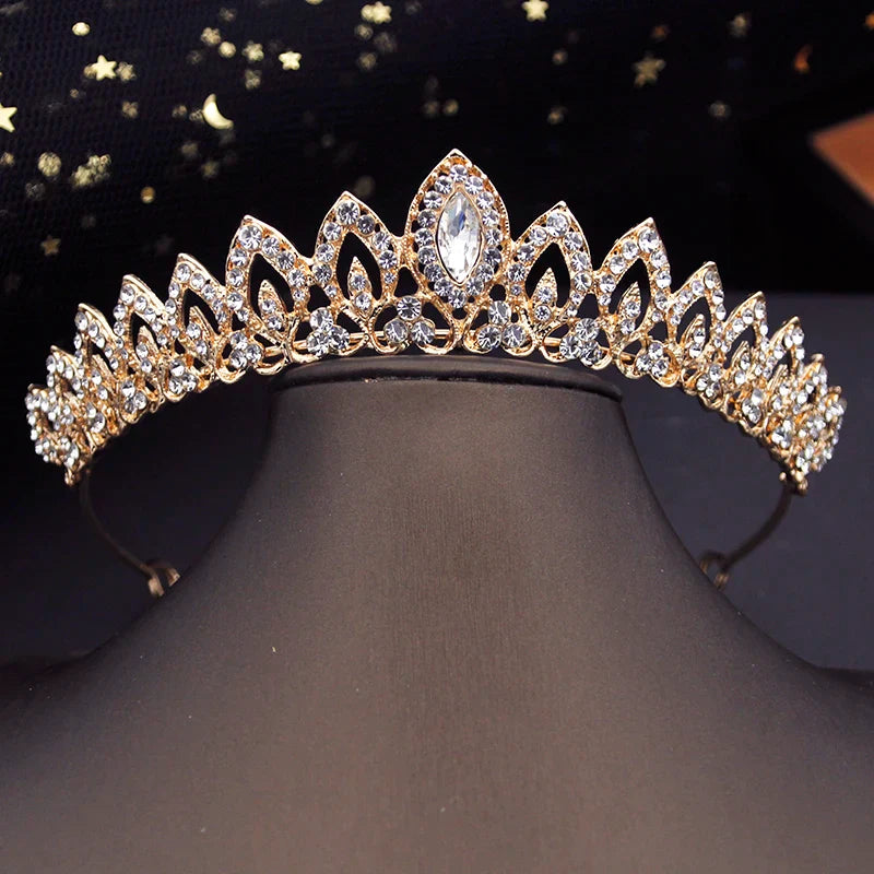 This Gold Colors Crystal Crown is not only a beautiful accessory but also a versatile piece that can elevate any outfit. Whether it's a bridal party or a birthday celebration, this tiara adds a touch of elegance and charm, making your little one feel special. Its lightweight design ensures comfort while wearing, allowing your princess to dance the night away without a worry.