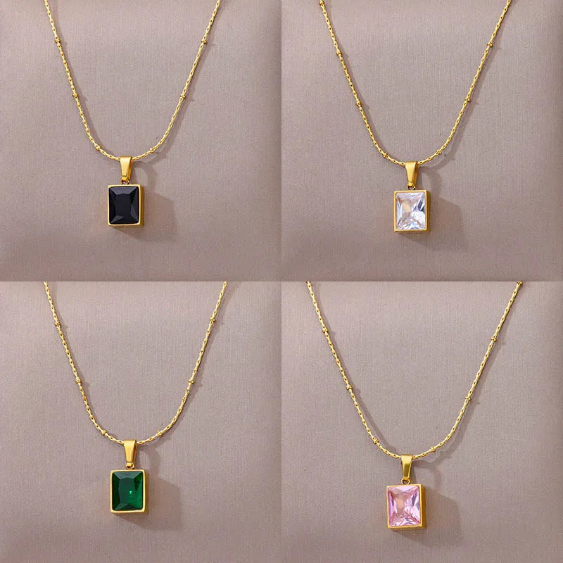Elevate your jewelry collection with the Green Square Zircon Necklace For Women Gold Color Stainless Steel Necklaces Wedding Fashion Jewelry Gift. Order yours today and embrace the blend of elegance and modernity!
