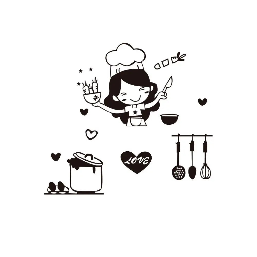 Transform your space with the Happy Girl Chef Loves Cooking Wall Sticker Restaurant Bar Kitchen Dining Room Fridge Light Switch Decal DIY Art Home Decor. This delightful wall sticker brings a whimsical touch to your kitchen or dining area, making it a perfect choice for food lovers and culinary enthusiasts. Crafted from high-quality PVC, this durable decal is designed to withstand the hustle and bustle of everyday life while adding a unique charm to your environment.