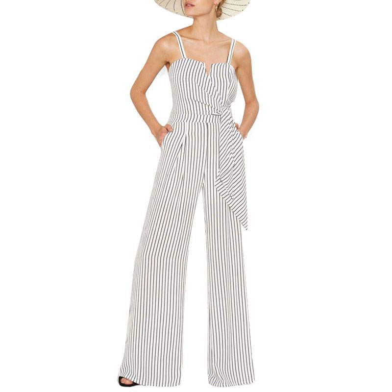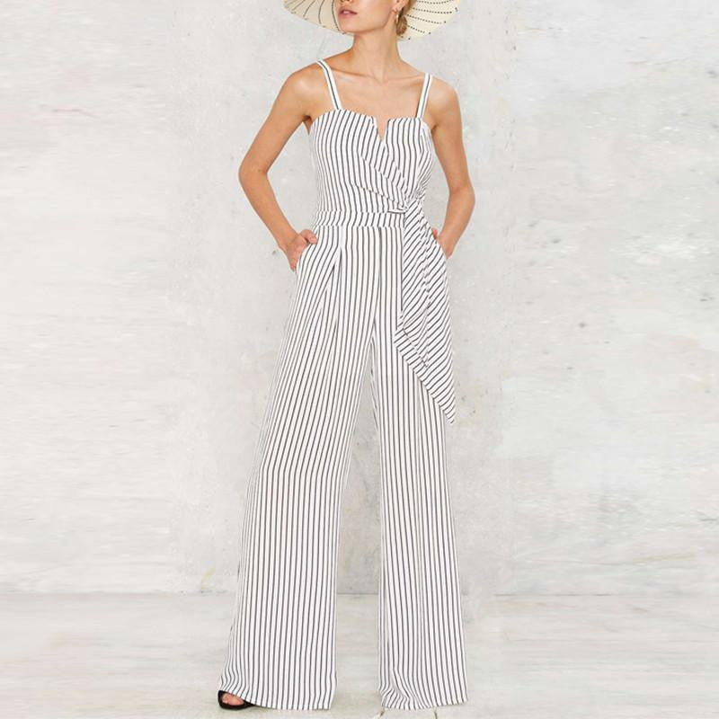Elevate your wardrobe with the Women Off Shoulder Strap Playsuit Stripe Romper Long Wide Leg Jumpsuit, a must-have fashion piece for the modern woman. This stunning romper is designed to make you feel both confident and comfortable, perfect for any occasion whether it's a casual day out or a chic evening event. Its eye-catching striped pattern adds a playful touch, ensuring you stand out in any crowd.
