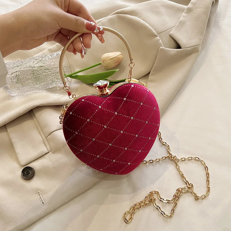 Step out in style with the Heart Shape Handbag Womens Red Wedding Purse Evening Party Hand Bags Cute Chain Crossbody Bags Heart Shaped Bag. This eye-catching handbag is designed to add a fun and flirty touch to your wardrobe, making it the perfect accessory for weddings, evening parties, and special events. Its charming heart shape not only stands out but also represents a playful side that complements your unique fashion sense.