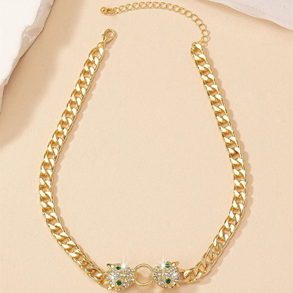 Whether you're dressing up for a night out or adding flair to your everyday look, this Hip-hop Gold Plated Rhinestone Leopard Head Necklace Jewelry Set is the perfect choice. The metallic chain bracelet adds an extra layer of style, making it a complete set for those who love to express their unique personality. Don't miss out on the chance to elevate your accessory game with this fashionable, animal-themed jewelry set!