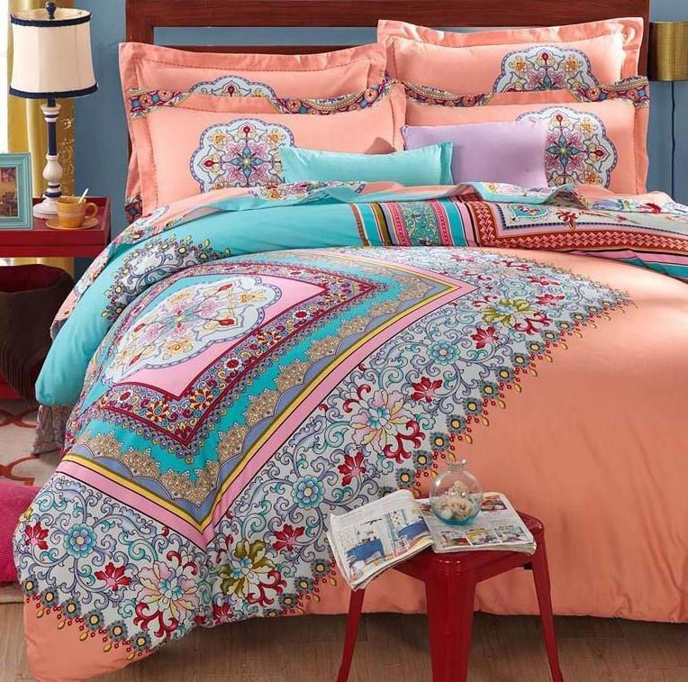 Transform your bedroom into a vibrant oasis with our Boho Red Blue Pink 100%Thicken Cotton Bedding set Duvet Cover Bed Sheet Pillow Sham Bed Set King Queen Size 4PCS. This exquisite bedding set combines rich colors and intricate patterns, making it a perfect addition to any bohemian-themed decor. Crafted from 100% thick cotton, it promises unparalleled softness and comfort, ensuring you enjoy a restful night's sleep.