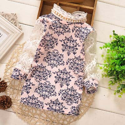 A classy blouse for little girs with long sleeves, lace material as collar and pearl as decoration. This is indeed an elegant outfit.
