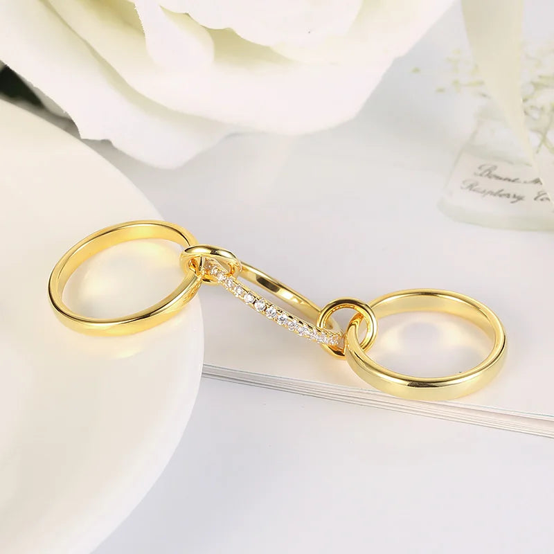 This Kameraon Fashion ring is sure to make a stylish statement. With its trendy multilayer stack design and high-quality gold plating, it's the perfect addition to any outfit. The shiny zircon stones add a touch of sparkle, making it the ideal ring for any occasion. Give it as a wedding gift or keep it for yourself to elevate your everyday look.