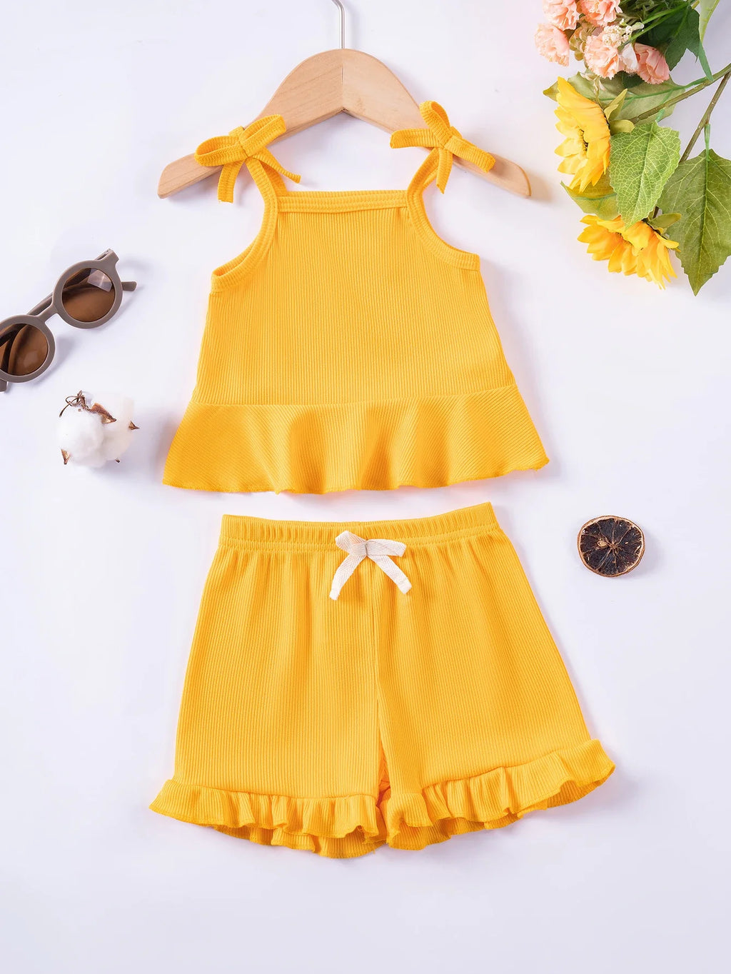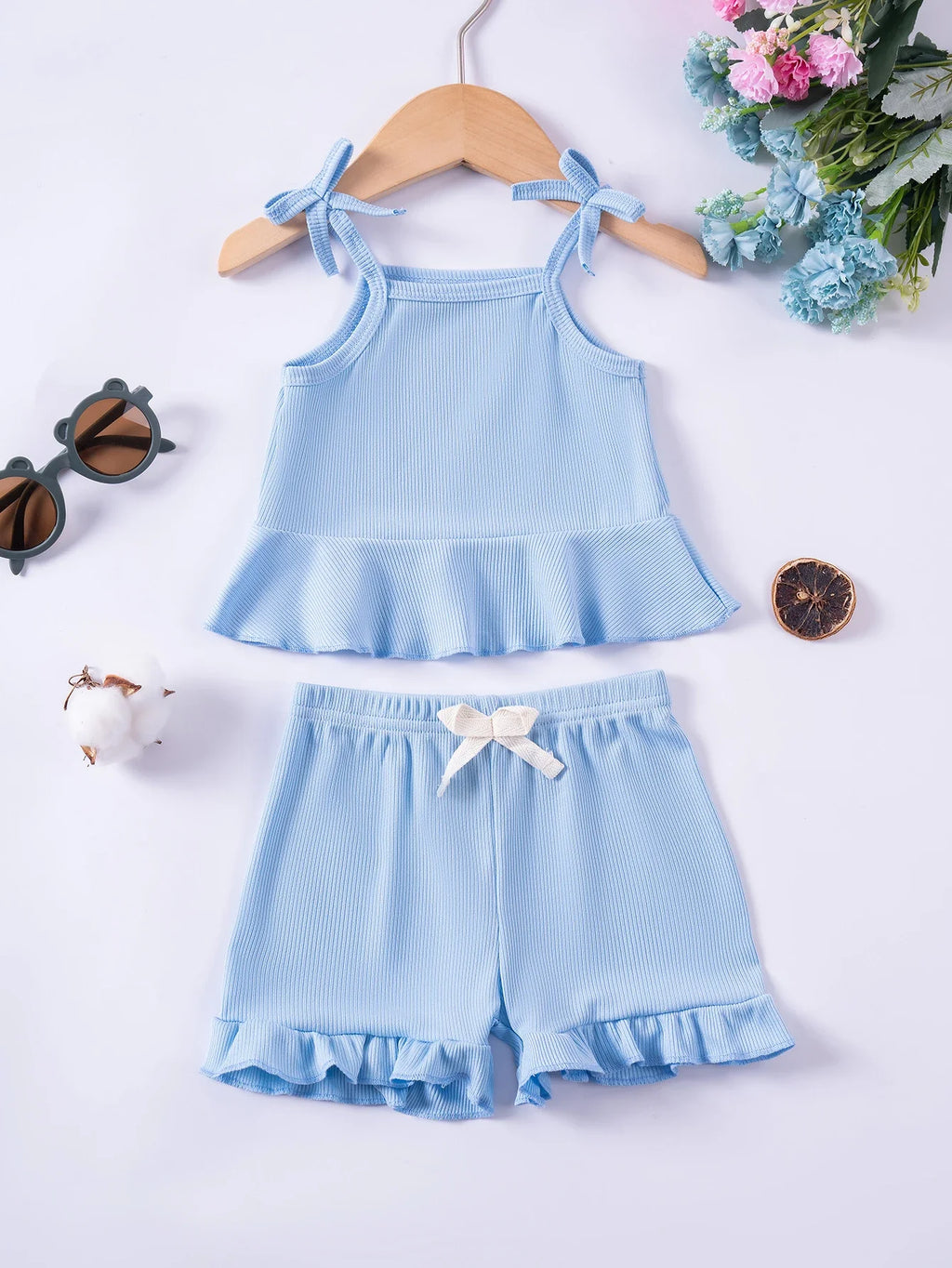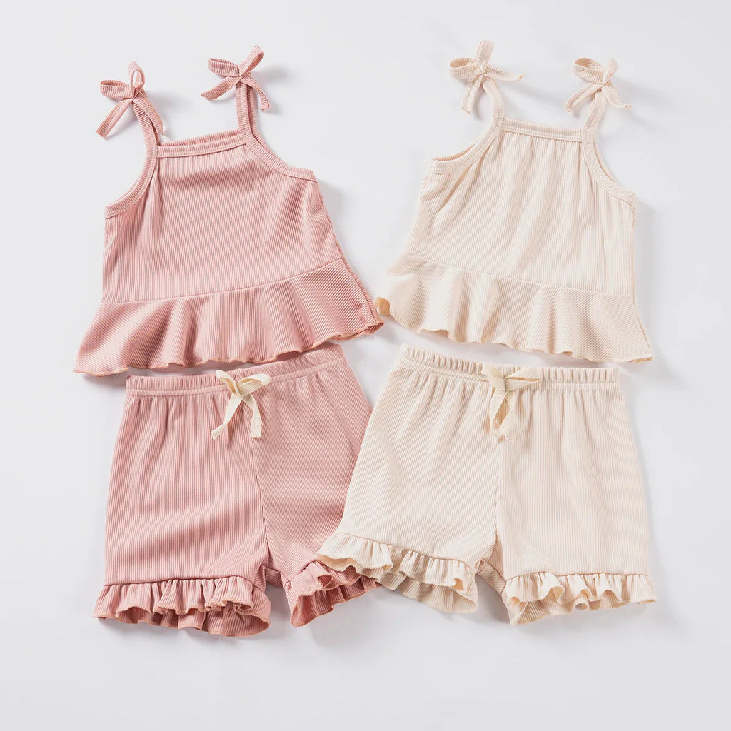 Get your little one ready for summer with our Kids Clothing Sets! This adorable 2-piece outfit includes a stylish camisole top and cute lace shorts. Perfect for casual days out or special occasions. Give your child a fun and fashionable look with our versatile set. (Pun intended!)