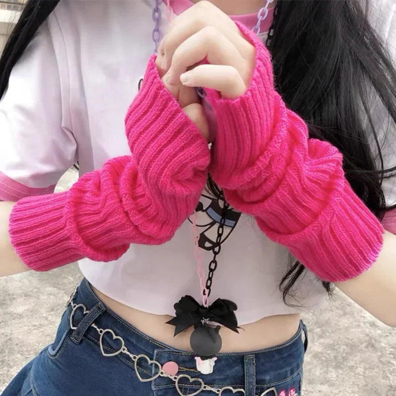 Stay warm and stylish with our Knitted Long Fingerless Gloves. Perfect for fashion-forward individuals, these gloves keep your hands toasty while allowing freedom for your fingers. Make a statement with our Y2K-inspired design, adding punk flair to any outfit. Time to rock these cozy and trendy arm warmers!