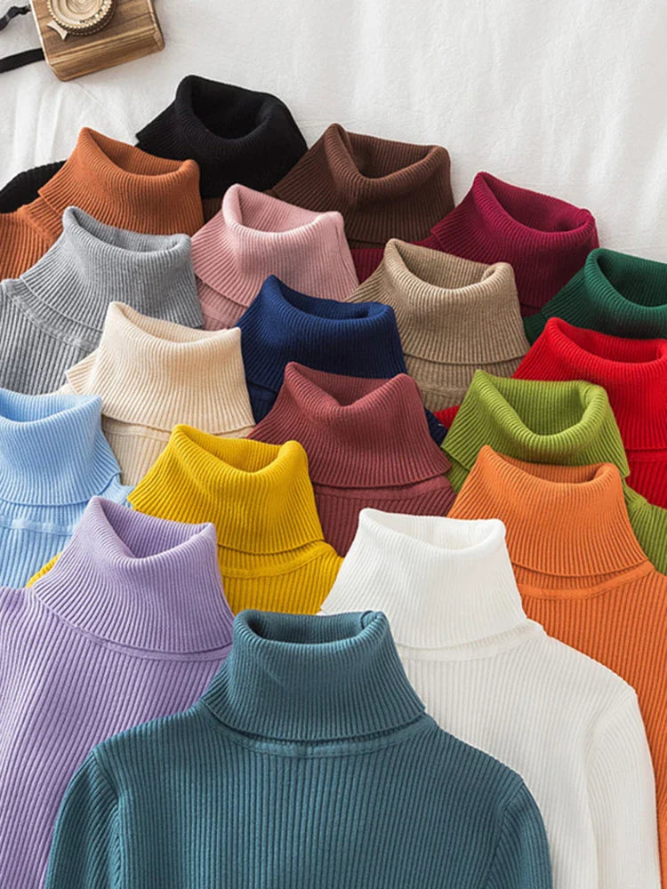 This Korean Fashion Turtleneck Women Autumn Winter Pullover Sweater is more than just a basic top; it merges style with functionality. Whether you're heading to work, meeting friends, or enjoying a cozy day at home, this sweater is your go-to choice. The ribbed texture adds an element of sophistication, while the solid colors make it easy to mix and match with your existing wardrobe.
