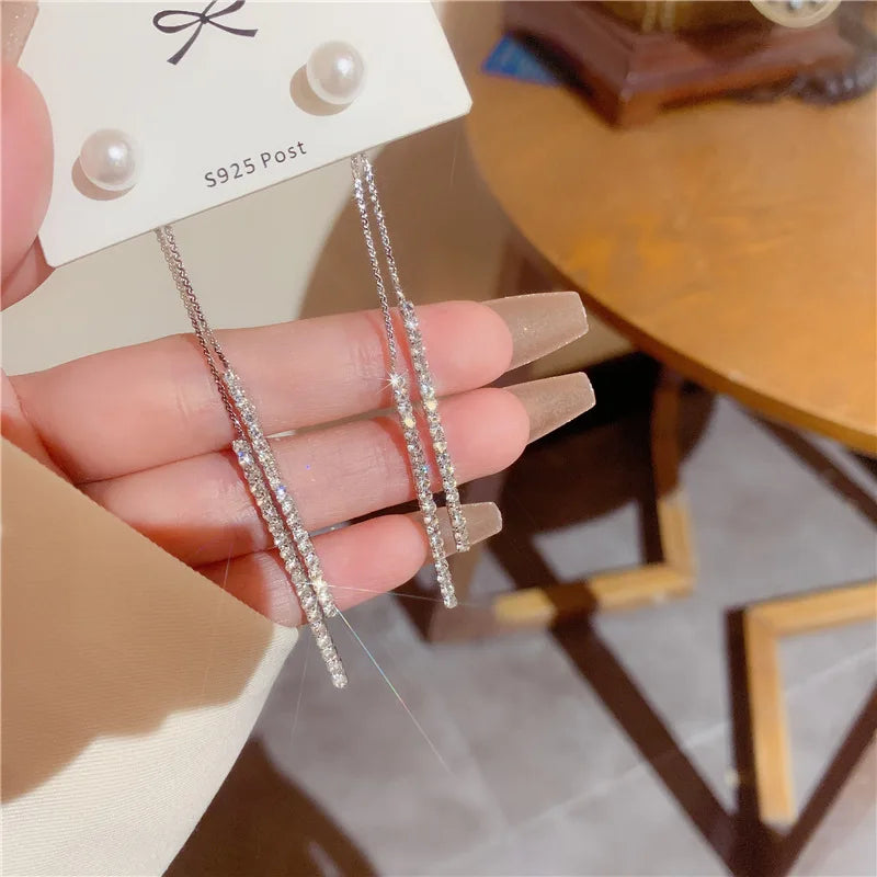 These Korean Long Tassel Pearl Dangle Earrings are more than just an accessory; they are a statement of style and grace. With their delicate design and sparkling details, they add a finishing touch to any ensemble. Whether you're dressing up for a night out or adding flair to your daytime look, these earrings are a must-have in your jewelry collection.