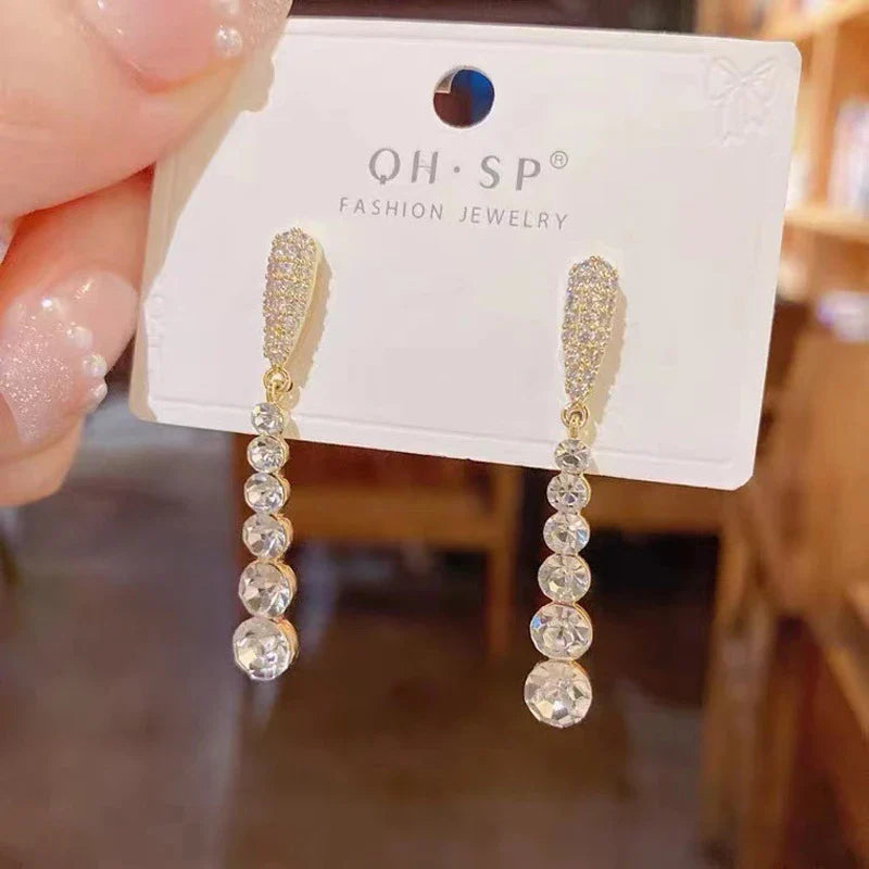 Elevate your accessory game with the stunning Korean Long Tassel Pearl Dangle Earrings for Women Luxury Full Rhinestone Gold Color Drop Earrings Wedding Party Jewelry Gift. These exquisite earrings are designed to bring a touch of elegance and sophistication to any outfit, making them ideal for special occasions such as weddings and parties. Crafted with meticulous attention to detail, the full rhinestone embellishments catch the light beautifully, ensuring you shine like a star wherever you go.