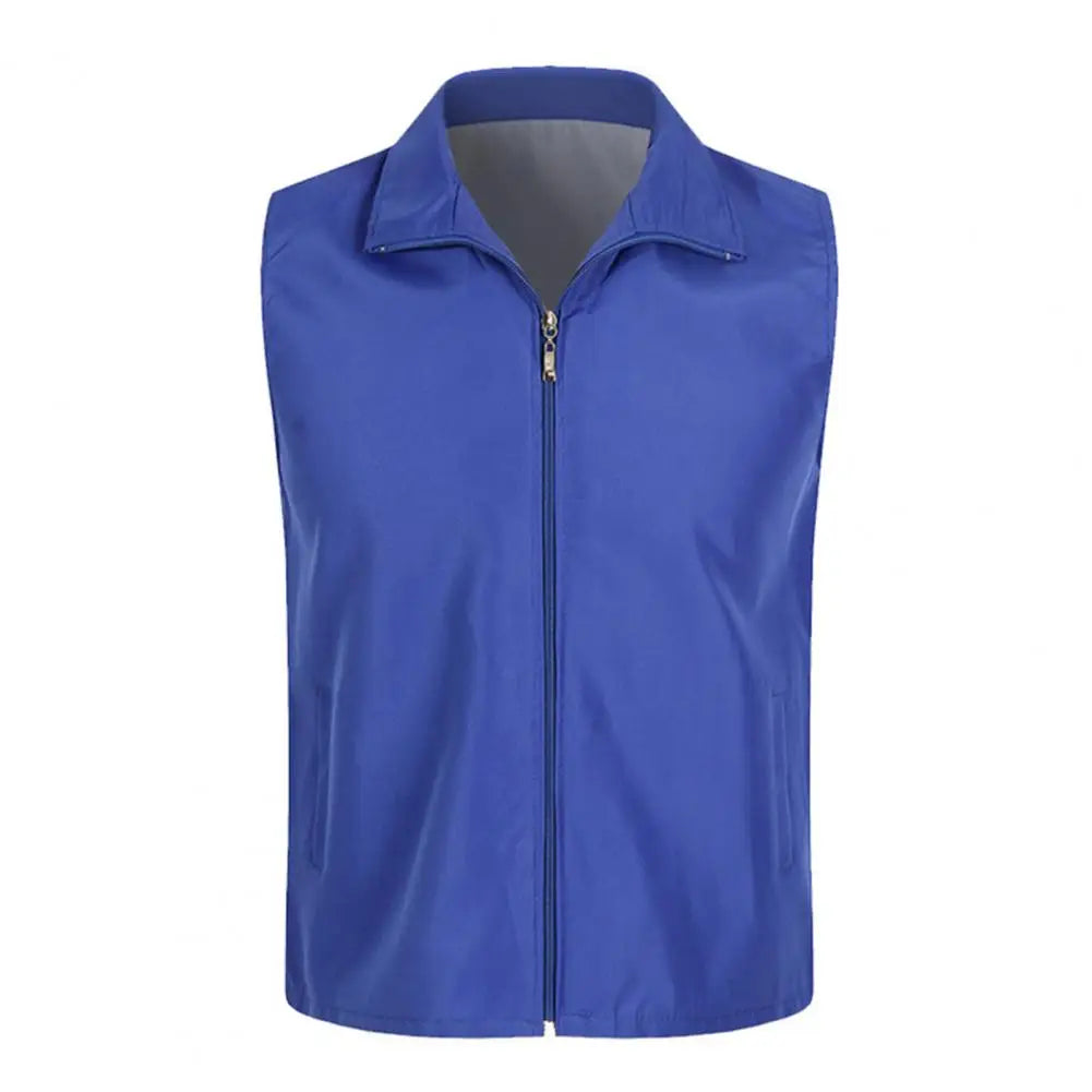 Introducing the Lapel Sleeveless Pockets Zipper Placket Mesh Lining Outdoor Vest Volunteer Bright Color Slim Fit Work Waistcoat Colete, your new essential for outdoor adventures and everyday activities. Designed for the active individual, this versatile vest combines functionality with style, making it an ideal choice for volunteers, outdoor enthusiasts, and anyone needing a practical yet fashionable layer.